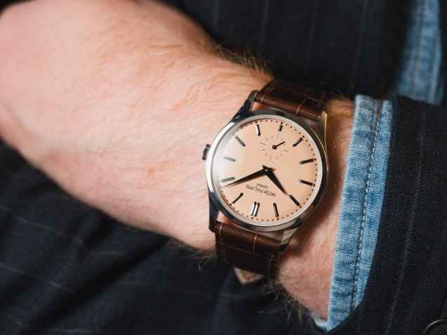 Patek opted for classically styled applied hour markers on the Calatrava 6196P. This style of indexes and round diamond-drilled minute markers have been used for almost 100 years. The dauphine hands are also classic. If everything sounds traditional, the curveball comes in with anthracite-colored hardware. I’m still not sure if this is better than polished indexes, but I suppose it brings a modern look to a highly traditional visage. When combined with the rose opaline dial, though, it’s a pretty picture.